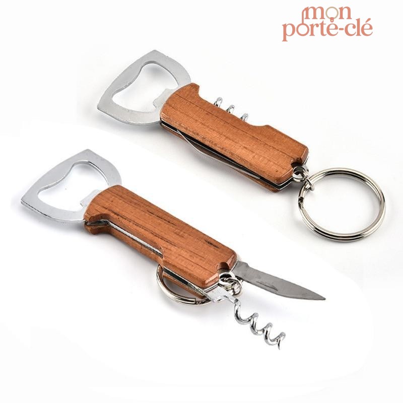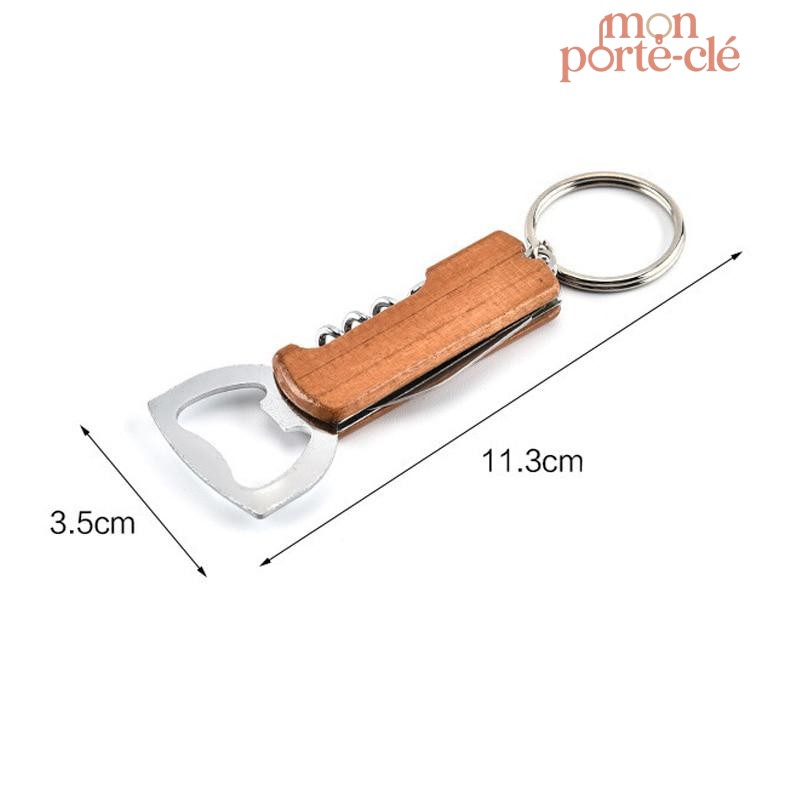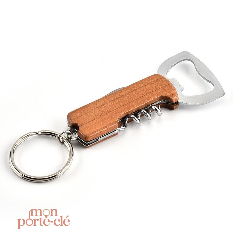 Porte-Clé Décapsuleur Tire-Bouchon Wood : un accessoire élégant en acier inoxydable, idéal pour ouvrir vos bouteilles de vin et bière avec style. Pratique et toujours à portée de main !