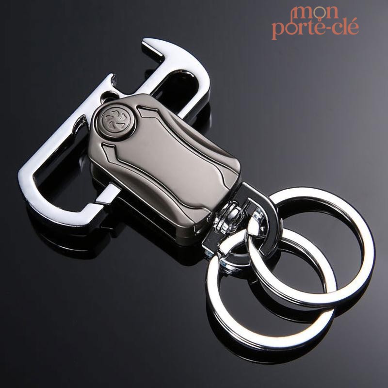 Porte-Clé Décapsuleur Mousqueton Rotatif en Acier Inoxydable
